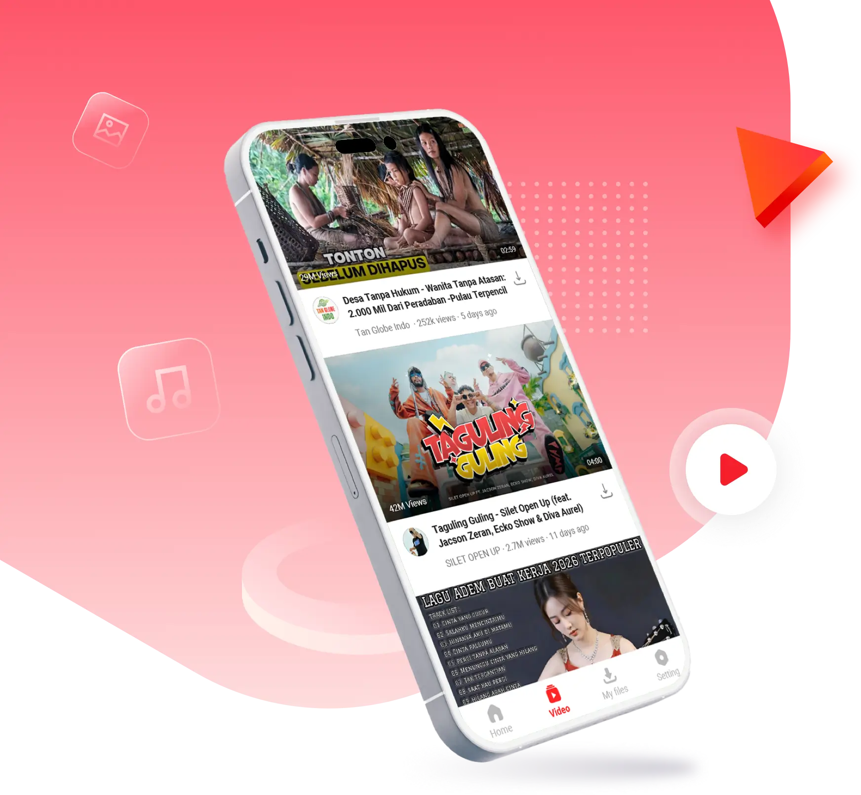 Buka Muka, cari video atau lagu favorit Anda, lalu ketuk tombol unduh untuk menyimpannya agar dapat ditonton offline.