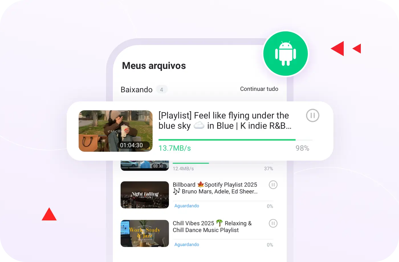 Se você perder a conexão ou sair do Wi-Fi, pode pausar os downloads e retomá-los mais tarde com um clique.