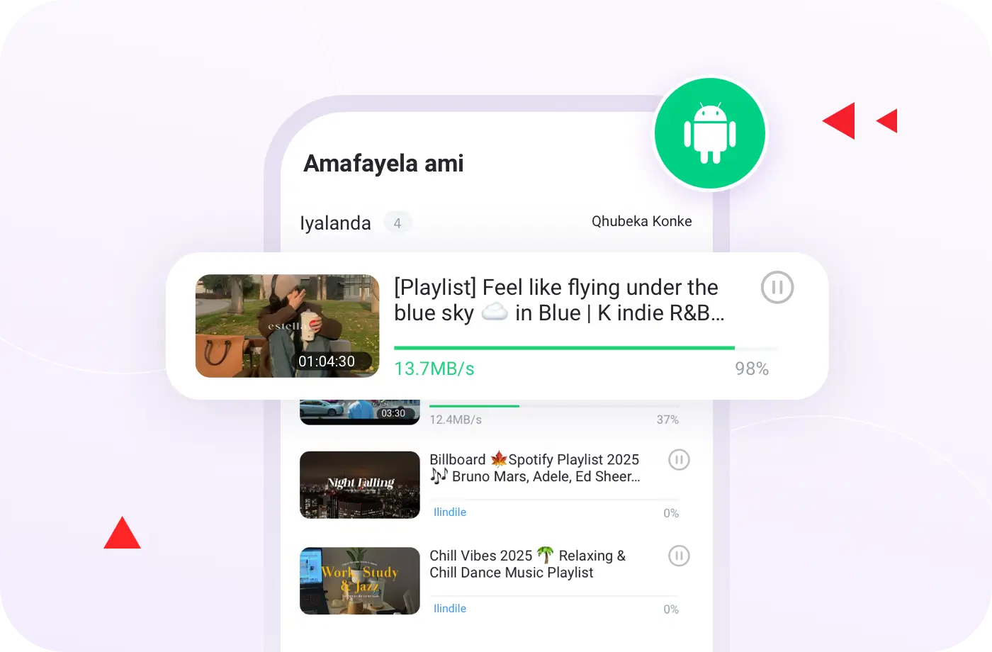 Landa ama‑playlist wonke kanye. Thepha inkinobho yokulanda, bese i‑Muka igcina wonke amavidiyo ohlwini ngokuzenzakalelayo.